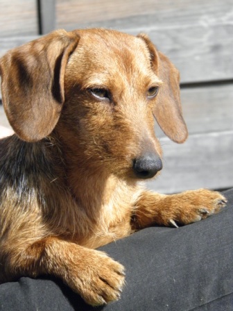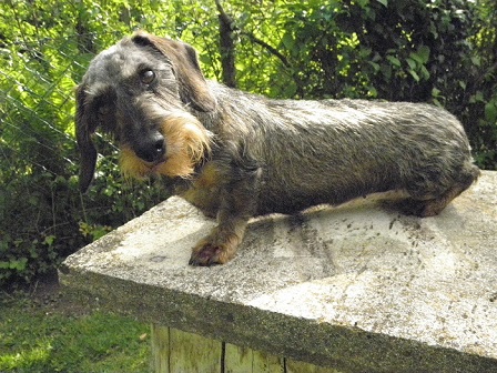 Hallo und Grüß Gott, hier ist Bijou vom Bergwind, ich bin eine dkl. - saufarbene Hündin, die gut im Typ steht, mit sehr gutem Rauhhaar.