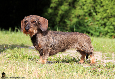 Hallo, ich bin Freija, eine saufarbene Hündin mit sehr guten Rauhhaar.